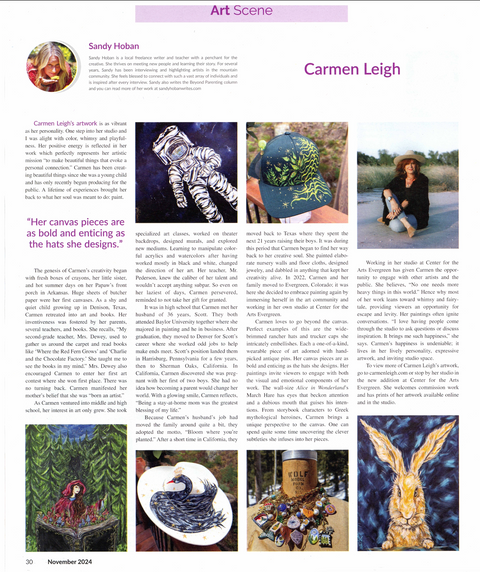 A quick profile on Carmen Leigh's art, her inspirations, and how creating beautiful things can lead to a brighter and happier life for others.
